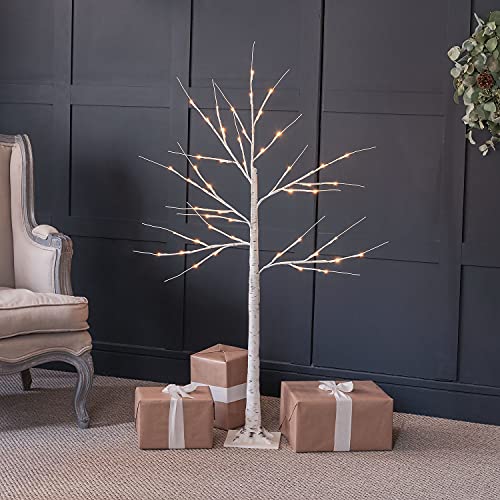 Christow Light Up Outdoor Birch Tree 4ft, Pre Lit Christmas Twig Tree with Lights, Mains Operated with Warm White LEDs (48 LED)