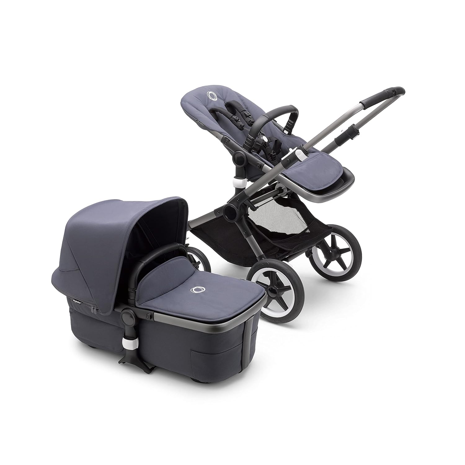 Bugaboo Fox 3, Our Most Comfortable 2-in-1 Travel System: Lightweight Pushchair, Comfort Pram & Advanced Breezy Carrycot, Graphite Chassis and Stormy Blue Bassinet & Sun Canopy
