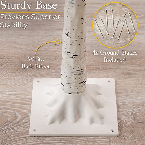 - STAND & GROUND STAKES INCLUDED: The tree includes a square base which has bumps to resemble the roots of a real birch tree. Simply screw the base of the tree onto the stand and it’s ready to display. If you’re displaying it outside, a set of U-shaped ground stakes are included to secure it to your lawn and prevent it falling over during windy weather