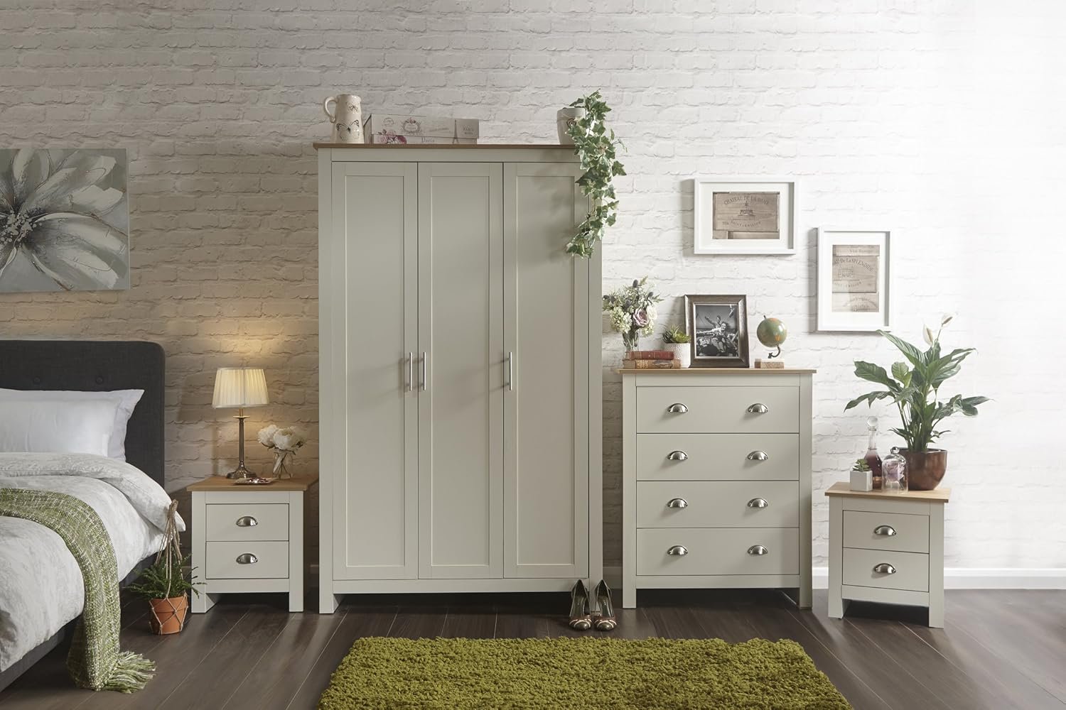 GFW – Lancaster 4 piece bedroom set – Wardrobe Chest of Drawers 2 x Bedside – Cream