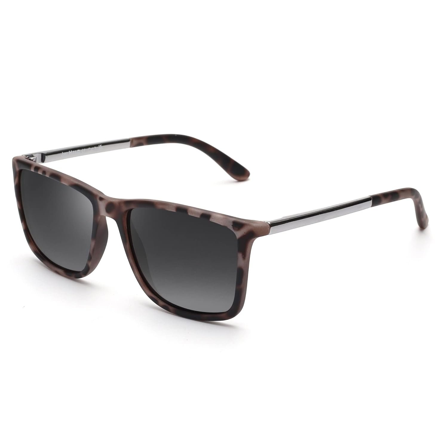 Jim Halo Polarized Driving Sunglasses Retro Square UV protection Classic Sun Glasses Men (Grey Tortoise/Polarized Grey)
