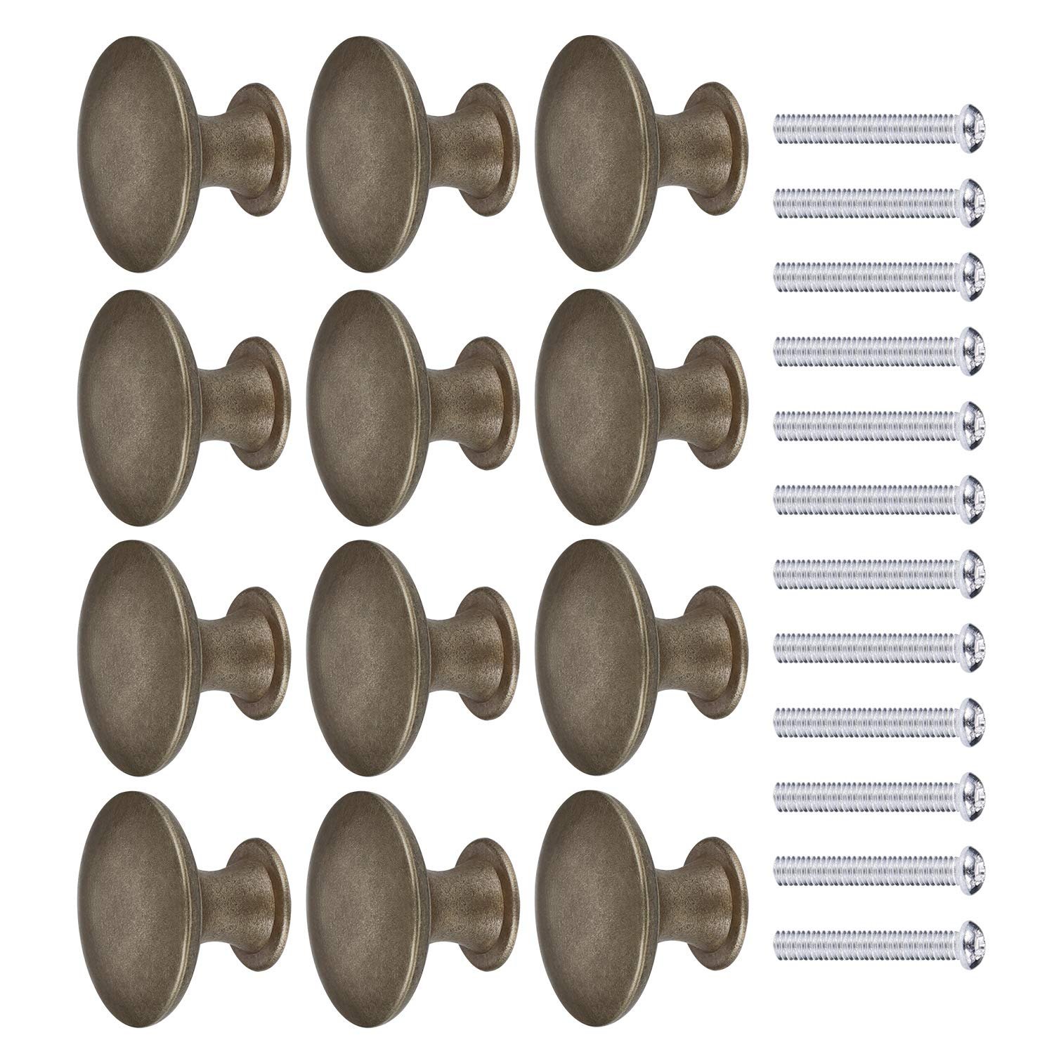 JIZZU 12 Pcs Dark Bronze Antique Brass Door Knob with Screws, Round Vintage Drawer Knobs Diameter 30mm, Mushroom Shaped Furniture Knobs Likes C