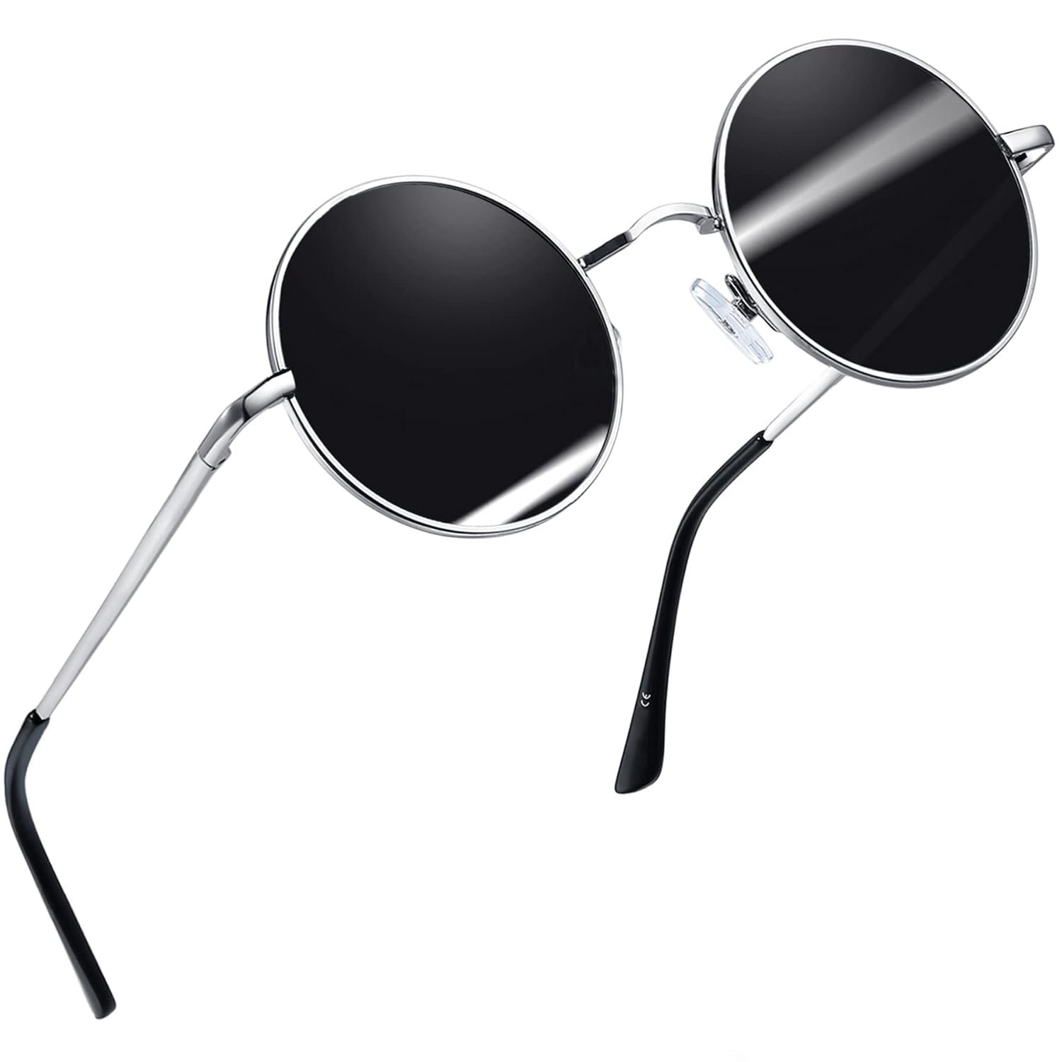 Joopin Vintage Lennon Round Sunglasses Man - Polarised UV400 Protection Metal Frame Retro Circle Sunglasses for Women and Men (Silver Black)
