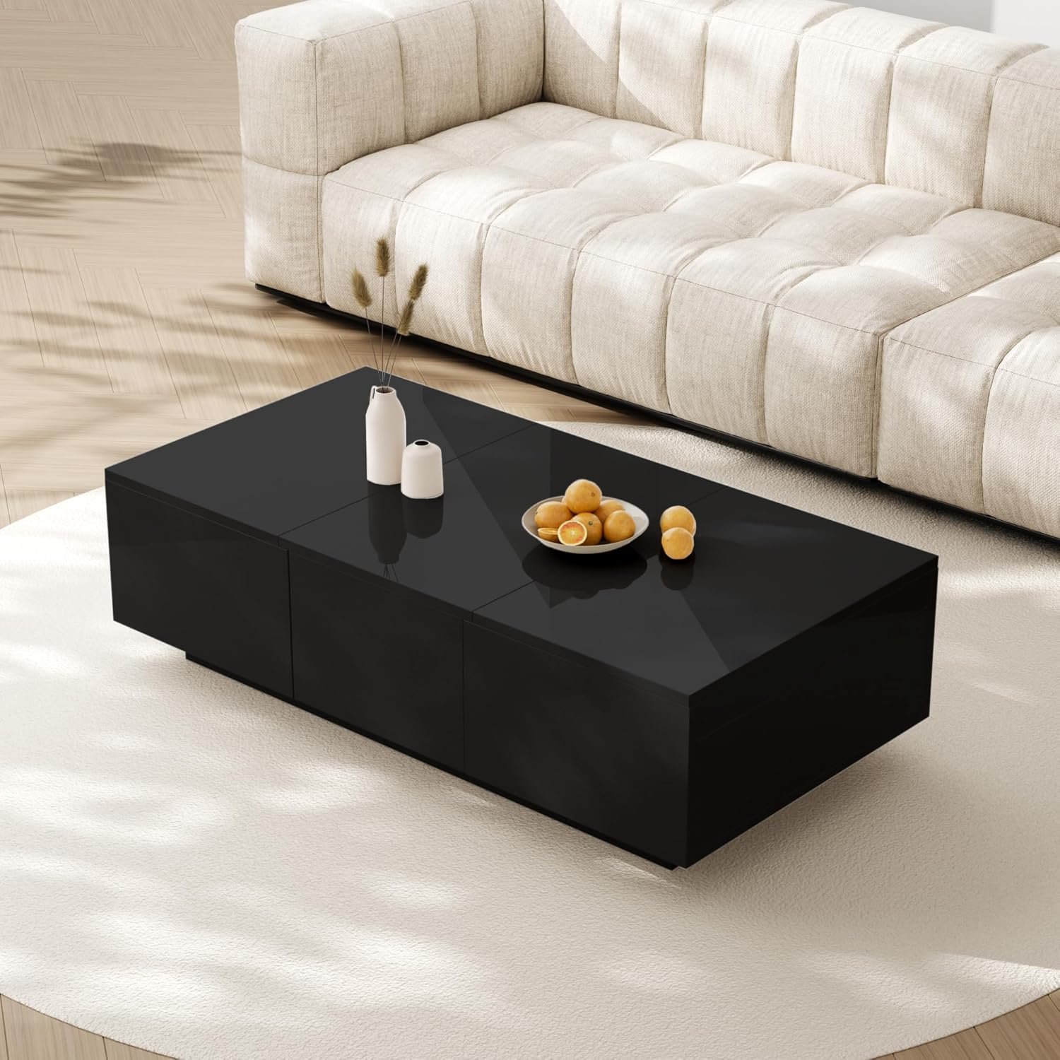 - Sophisticated High-Gloss Design – Elegant black high-gloss surface adds a modern and luxurious touch to any living room, enhancing your home decor.