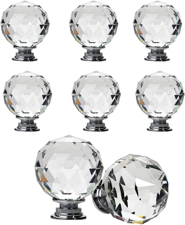 NUODWELL 8 Pcs Spherical Drawer Knob Crystal Pull Handles Cupboard Wardrobe Knobs (40MM