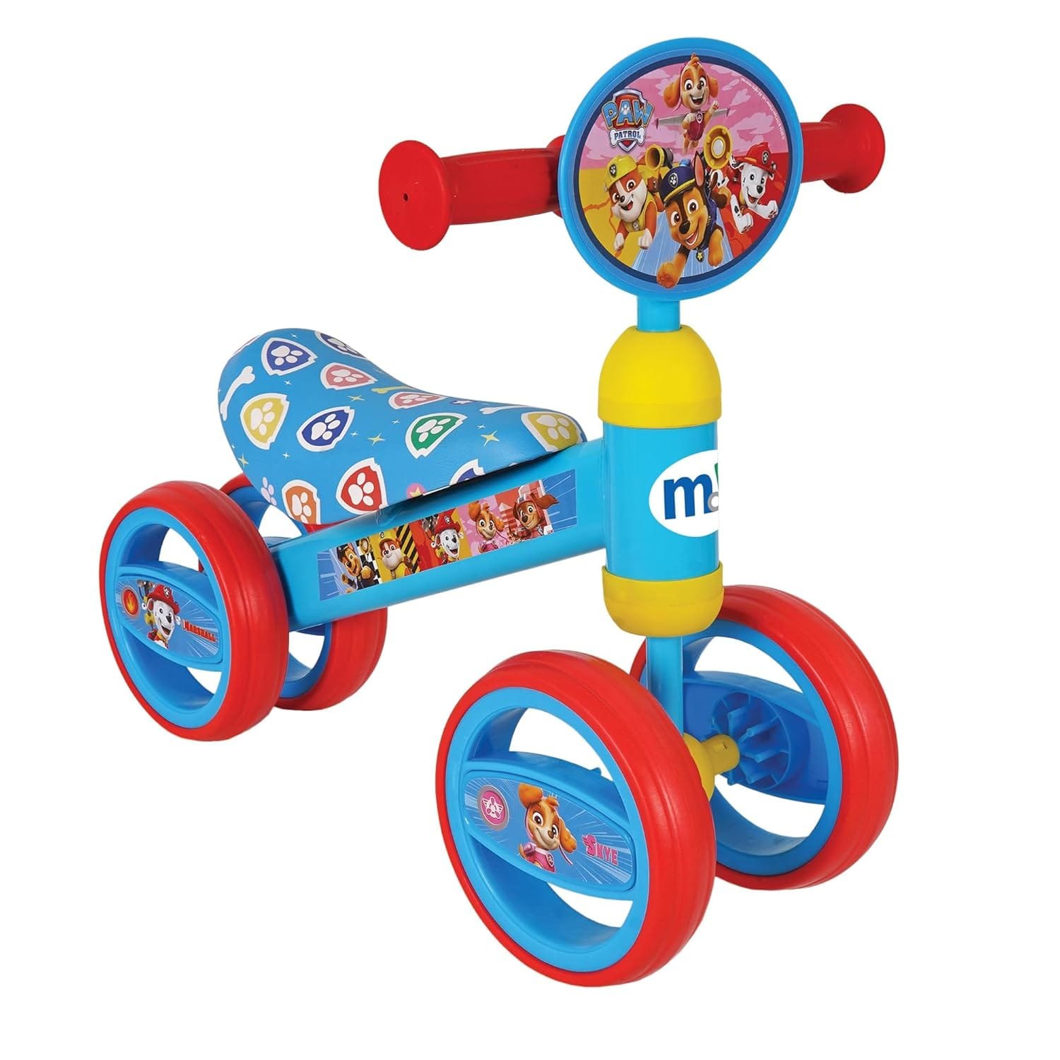 - OFFICIAL PAW PATROL RIDE ON – hop aboard this ride on toy and join Chase and friends on an adventure. Suitable for ages 1+, it features officially licensed, brightly-coloured decals and a bespoke front plaque that help visual development!