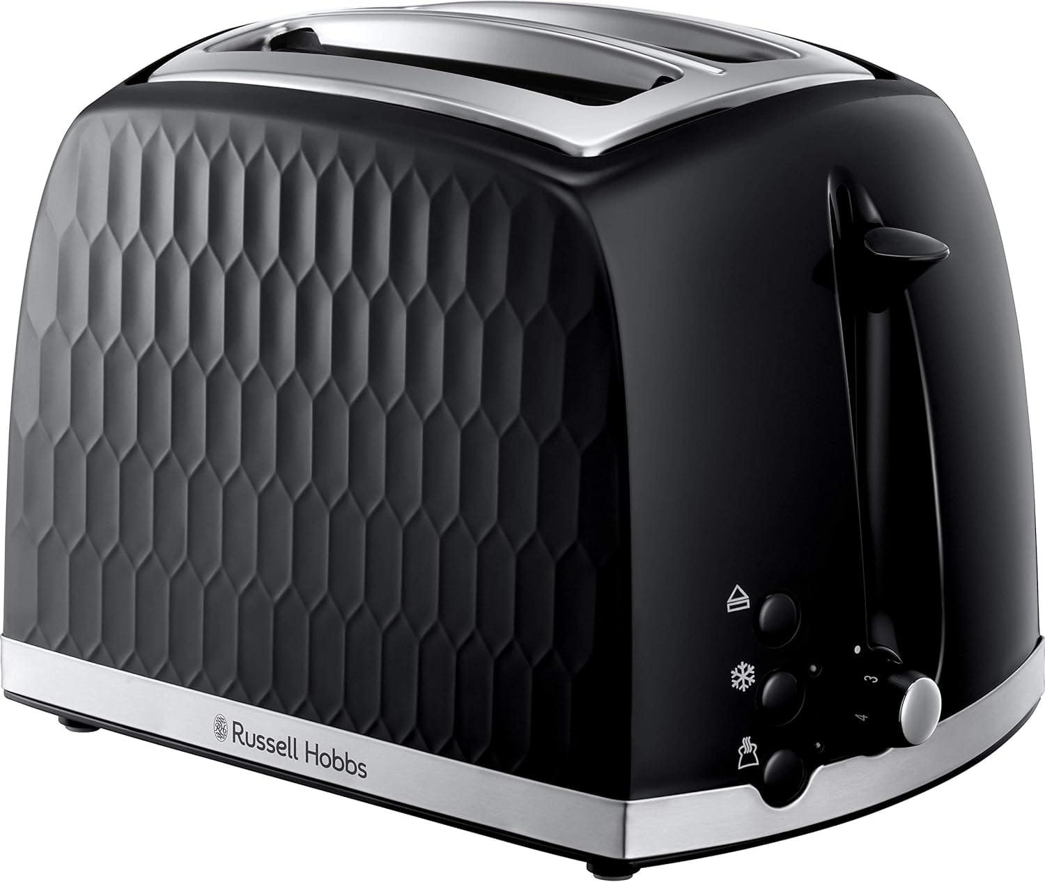 Russell Hobbs Honeycomb 2 Slice Toaster (Extra wide slots, High lift feature, 6 Browning levels, 850W, Black, Textured high gloss) 26061