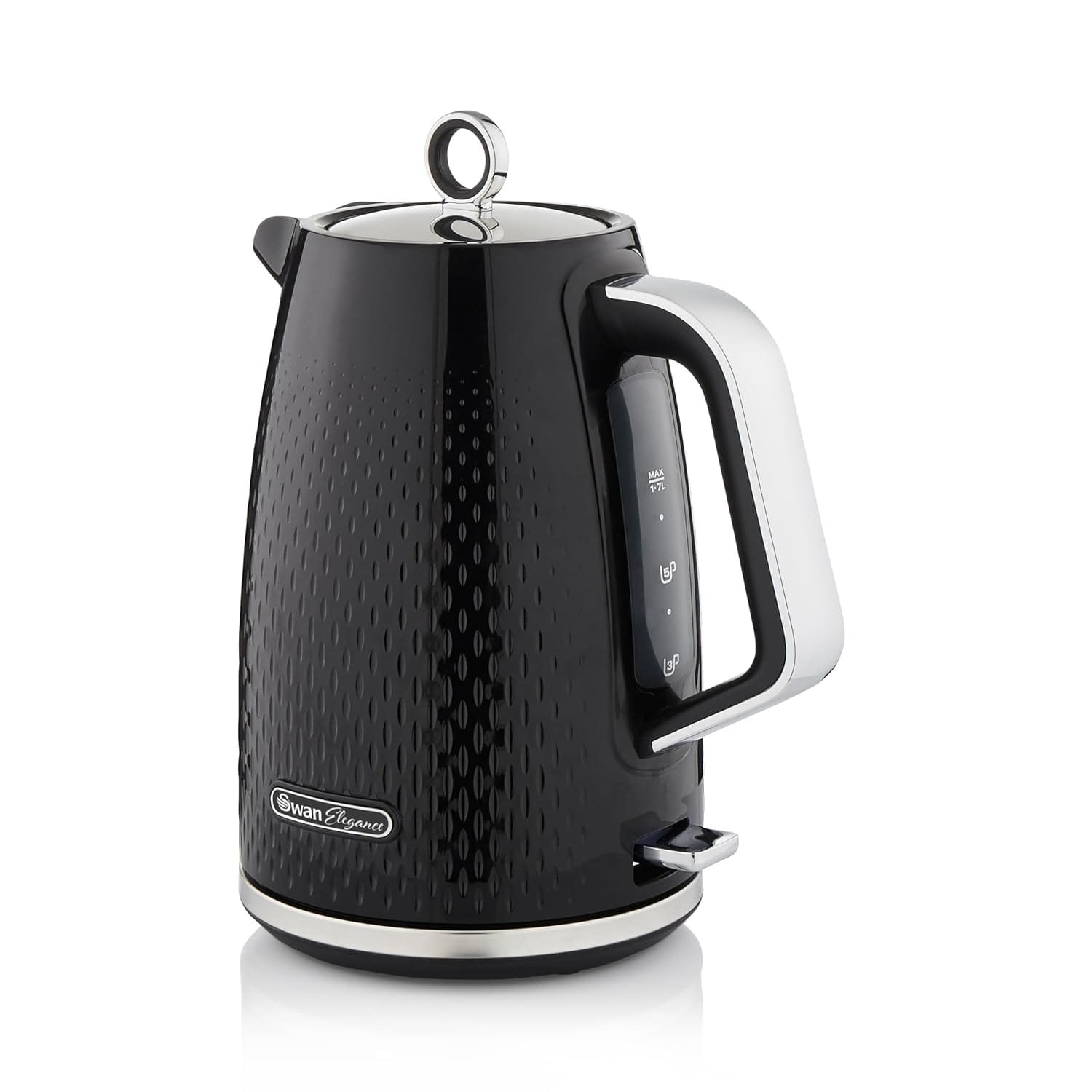 Swan SK14016BLK Elegance Cordless Kettle, Sleek Textured Gloss Finish with Rapid Boil and Boil Dry Protection, 1.7 Litres, 3000W, Black