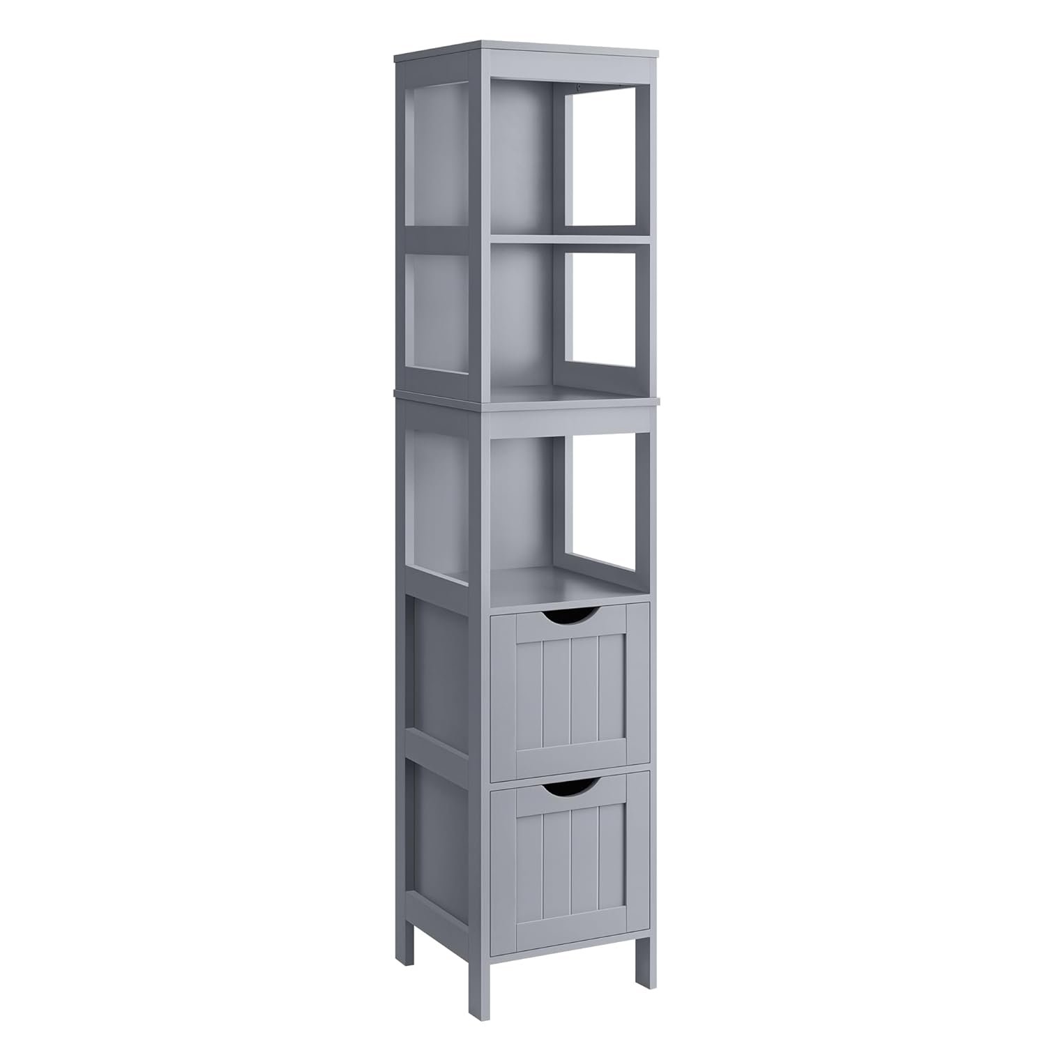 VASAGLE Bathroom Floor Cabinet, Freestanding Bathroom Storage Unit, with 2 Drawers, 3 Open Compartments, for Bathroom, Living Room, Kitchen, Modern Style, Dove Grey BBC066G02
