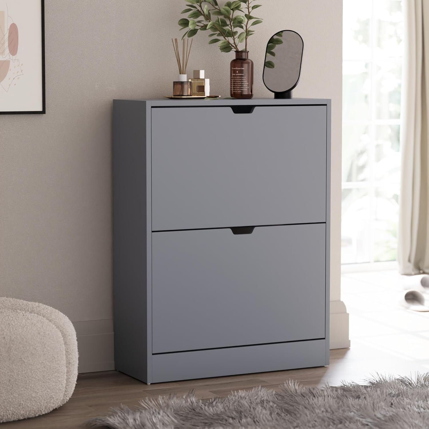 Vida Designs 2 Drawer Shoe Cabinet, Space Saving Shoe Storage Cupboard with 2 Flip Drawers, Hallway ad Living Room Furniture 100% FSC certified (Grey)
