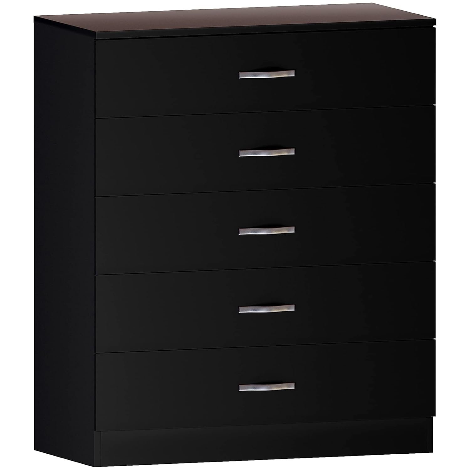 Vida Designs Riano 5 Drawer Chest of Drawers, Metal Handles and Runners, Anti-Bowing Drawer Support, Bedroom, Nursery Furniture, Black