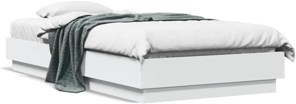 vidaXL White Single Bed Frame 90×190 cm with RGB LED Lights – Modern Engineered Wood Bedroom Single Sleep Station