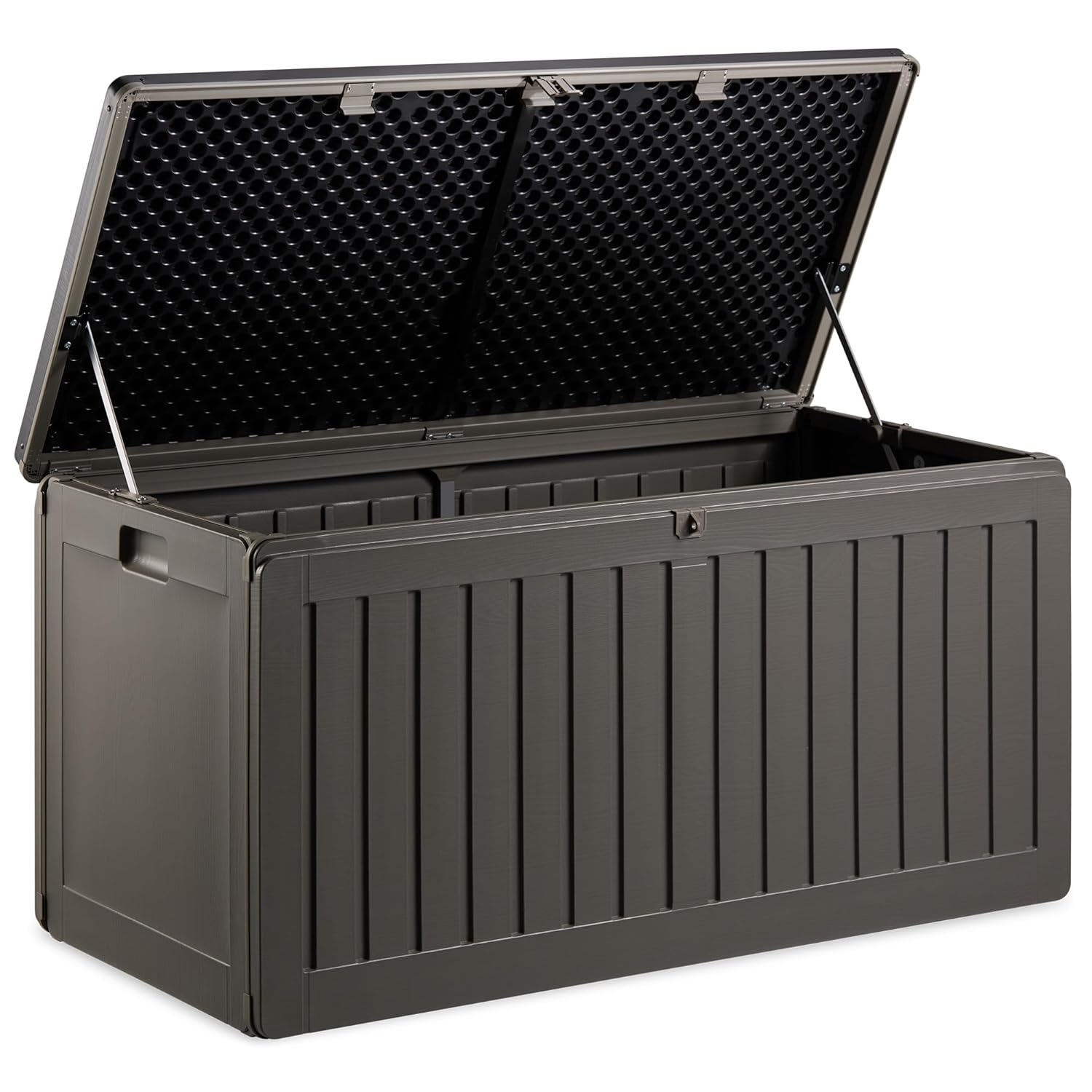 - EASY LOADING & UNLOADING: Featuring aluminium sliding bar hinges for smooth shutting and secure opening, your outdoor storage container is a pleasure to use; utilise its large 270L capacity and fill it up to the brim!