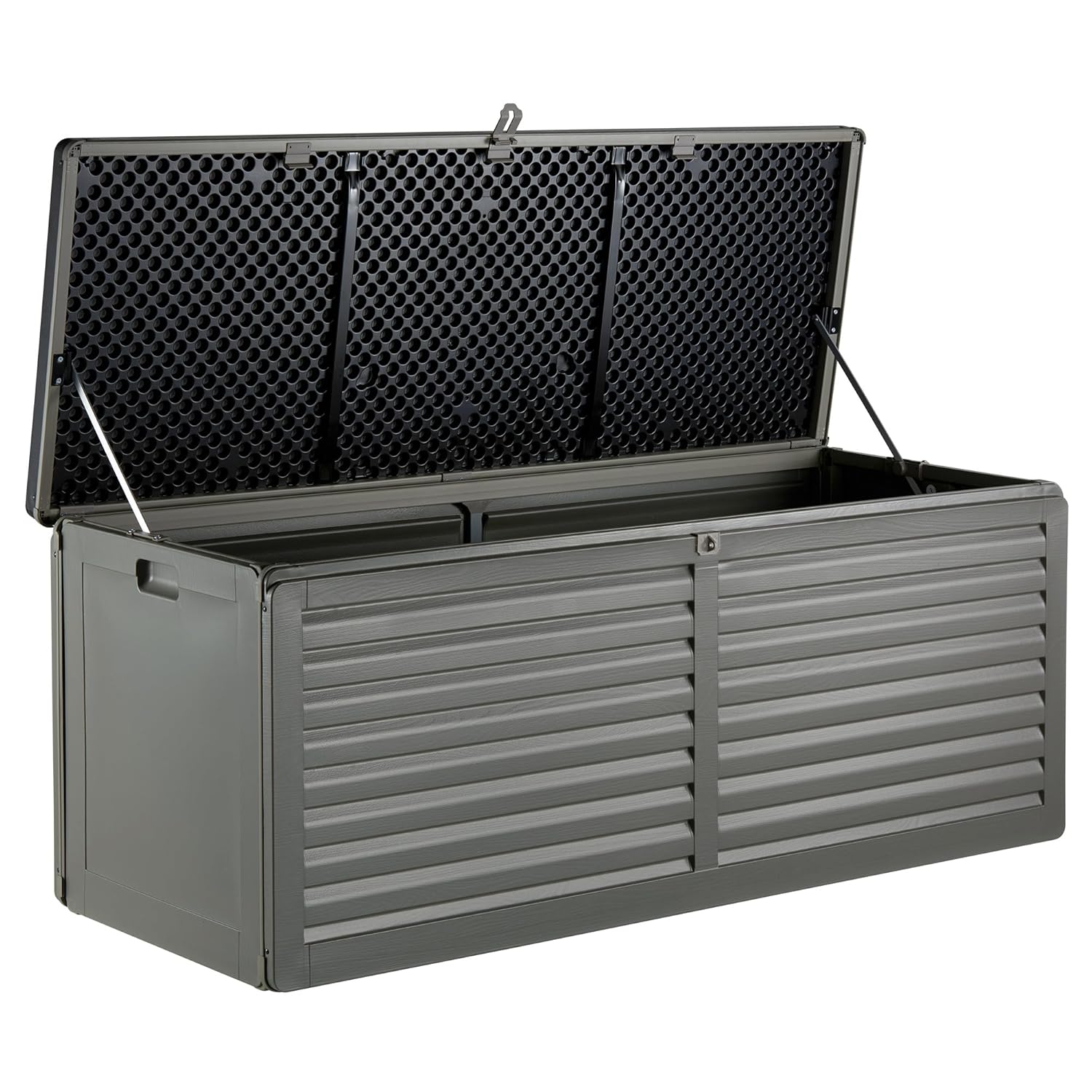 - SLAM-PROOF LID: Featuring two sliding bar hinges for smooth shutting and secure opening, your outside storage box is simple and safe to use. Enjoy easy access to a whopping 390L worth of garden essentials!