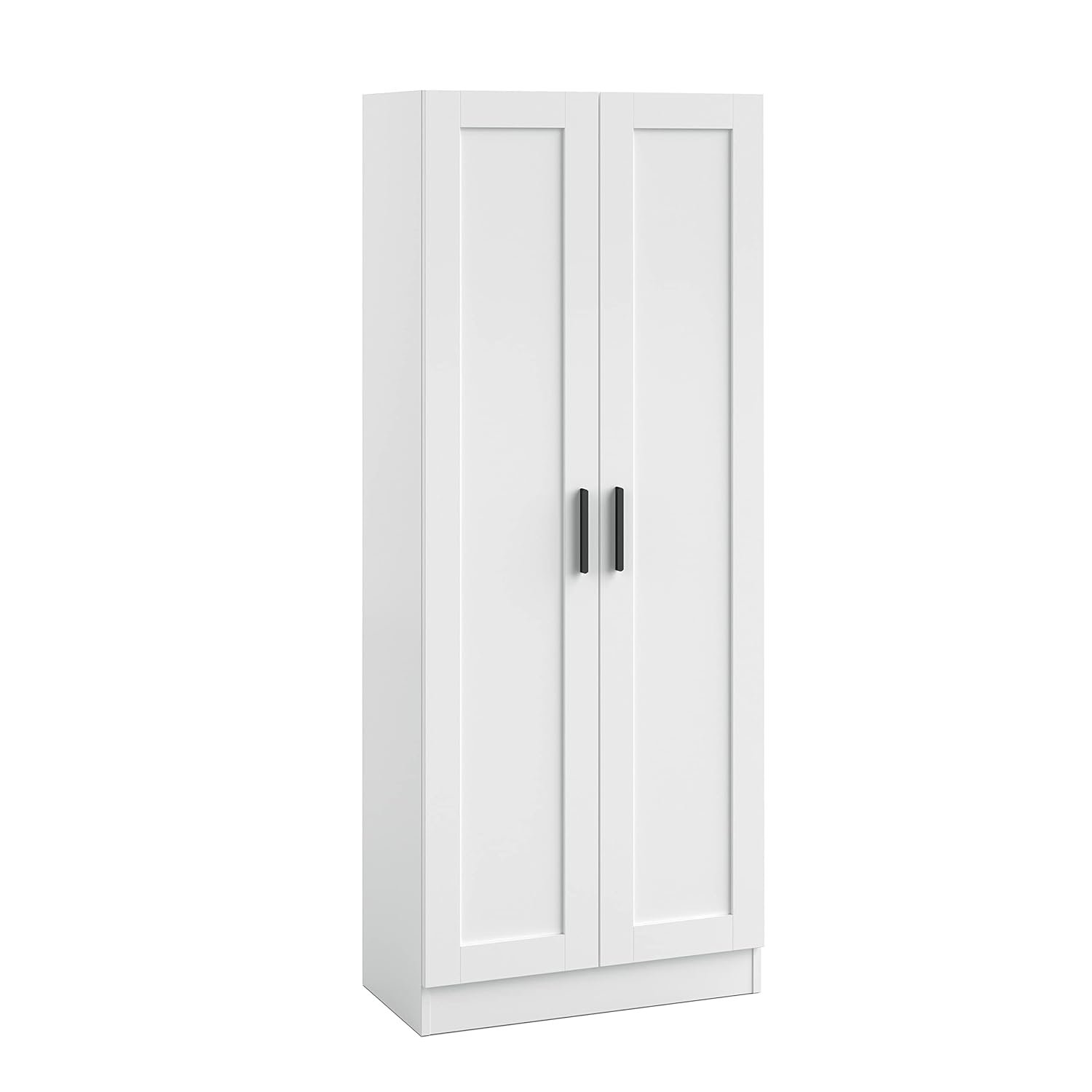 Wooden Storage Cabinet, Freestanding Tall Kitchen Cupboard Narrow Pantry Cabinets Sideboard Organizer Unit with 2 Doors & Adjustable Shelves (White)