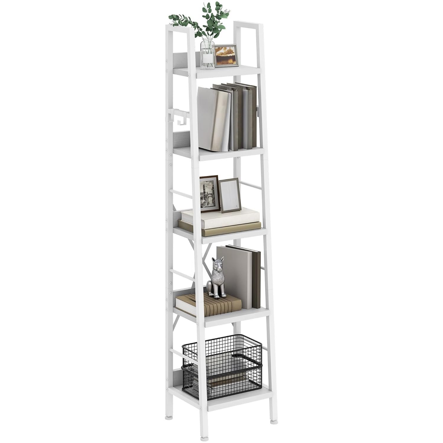 - Space Saving: This narrow bookshelf occupies a mere 35 x 30 cm of floor space while maximizing vertical storage with its 170cm height and 5 shelves; This space-efficient ladder shelf works like magic in compact spaces